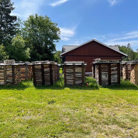 1000 liters sekker med ved selges.