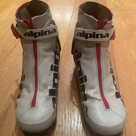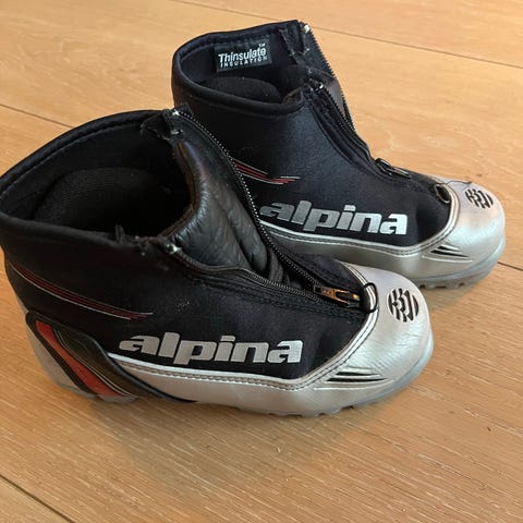 Alpina langrennssko i str. 35. Snøring og glidlås foran.