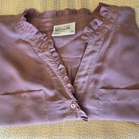 H&M bluse i størrelse 42 for kvinner. Blusen har en rosa farge og er designet som en skjorte-type bluse.