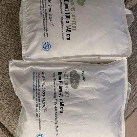 Dundyne strl 65×80cm. Et sengesett i bomull å et i flanell (det blå er i flanell, oppleves noe stort i strl). Selges samlet.