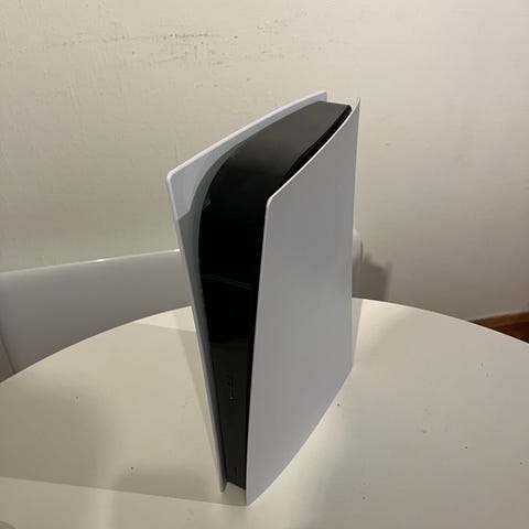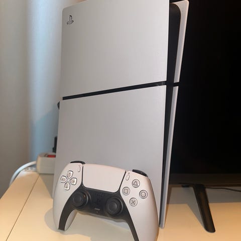 Playstation 5 spillkonsoll fra Sony. Konsollen tilbyr avansert grafikk og rask lastetid med SSD-teknologi. Egnet for gaming med støtte for nyeste spilltitler og tilbehør.