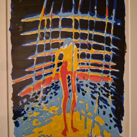 Selger et meget flott og monumentalt grafisk verk - litografi - av Nico Widerberg. En av Norges mest anerkjente kunstnere. Verket bærer tittelen "Broen" og er et klassisk eksempel på Widerbergs unike evne til å kombinere menneskekroppen med symbolske, arkitektoniske former.
