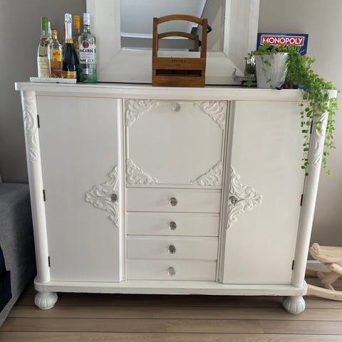 Selger denne skjenken i sort. Det er noen bruksmerker på innsiden.