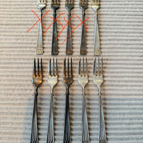 Kakespaden har «tagger» på den ene siden, slik at det er lettere å skjære gjennom kaken.