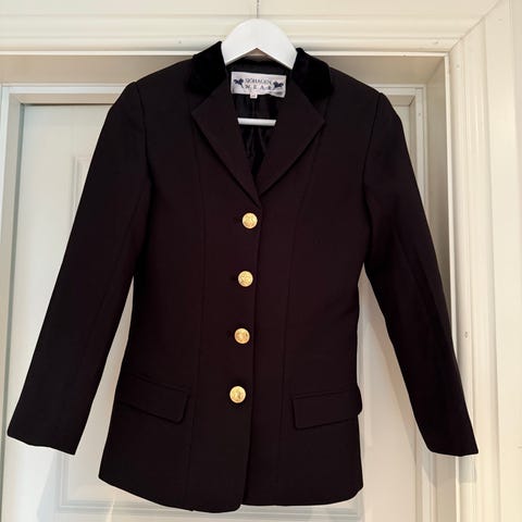 Sort ridejakke til stevne. Str 164. Pent brukt.