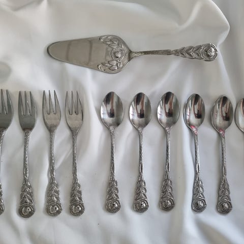 Kakespade og paikniv i rustfritt stål, selges samlet kr 350,-