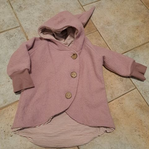 Hjemmesydd kåpe i fleecemateriale. Når jeg måler vil jeg si den tilsvarer en str 104. Pent brukt.