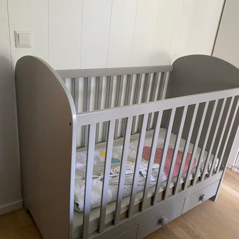 Selger sprinkelseng fra IKEA, madrass følger med (den er renset før salg). Noe bruksmerker som kan sees på bildet som er lagt ved. Om ønskelig kan laken følge med.