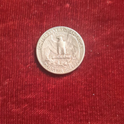 Sølv United States Standing Liberty Quarter mynt fra 1944 med motiv av en stående Liberty på forsiden og en ørn på baksiden. Mynten er laget av metall og har historisk verdi.