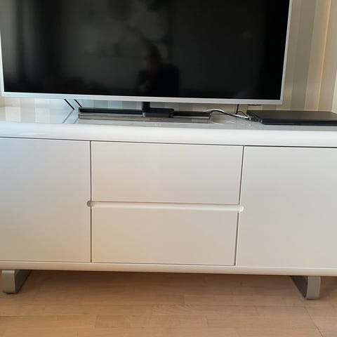 Hvit skjenk med skuffer og skap (trolig IKEA)