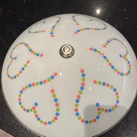 Taklampe med blanke "diamanter". Passer fint på soverom, kontorer eller i trappeoppgang. Må hentes i Moss!