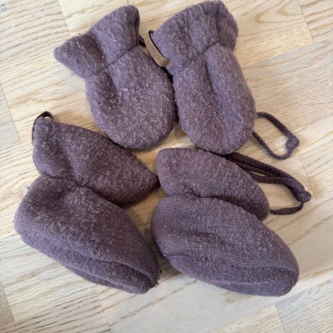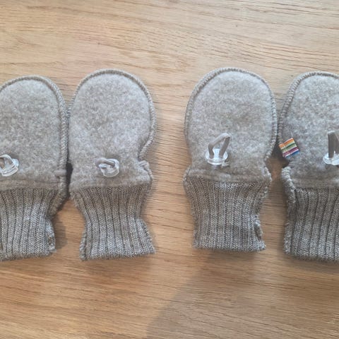 Selger 2 par herlige, myke og varme ullvotter til barn fra Joha. Str 2-3 år (80-100 cm). Vottene har 2-lags ull og har en kjekk hempe for å stramme vottene rundt håndleddet slik at de sitter godt til barnets hånd. Ingen hull. Kommer fra røyk- og dyrefritt hjem. Kr 49 per par.