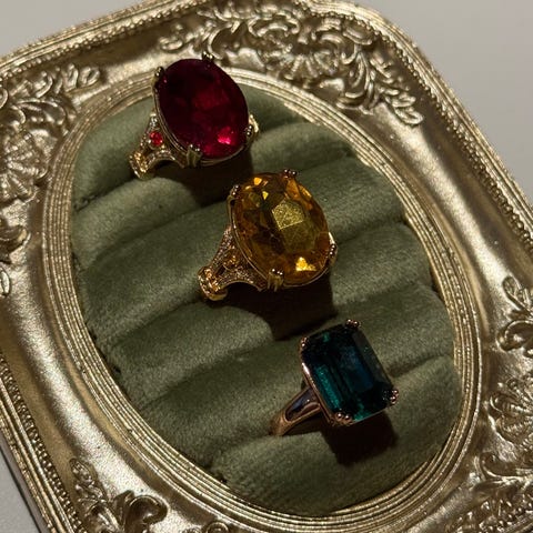 4 stk retro ringer i ulike fargenyanser selges samlet. Veldig kule asymmetriske ringer som er unike.