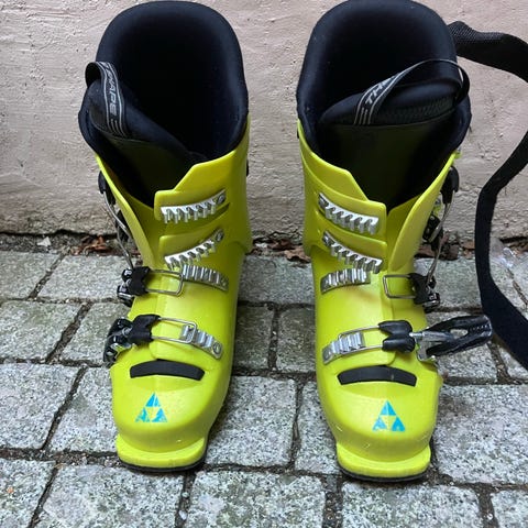Tecnopro T-30 alpinstøvler med størrelse 21,5 . Støvlene har svart og rød farge og fire spenner for justering. Egnet for alpinski.