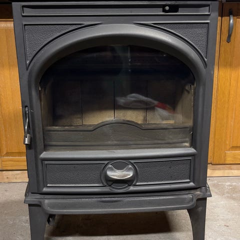 Ovnen er pentbrukt, er i meget god stand, varmer godt og holder varmen lenge.