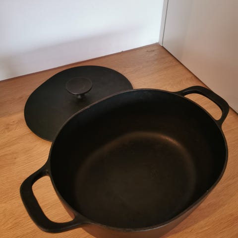 Gryten er pent brukt og fremstår i god stand. Normal bruksslitasje kan forekomme, men ingen sprekker eller skader som påvirker bruk.