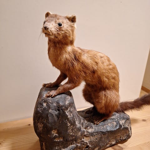 Lunnen er montert i en rolig, naturlig positur og fungerer utmerket som et skarpt blikkfang i eksklusive interiører – hjem med karakter, hytter, kontorer, gallerier eller stylingprosjekter.