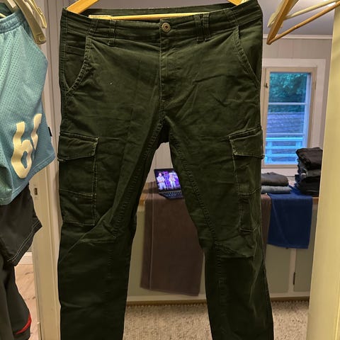 Klærne varierer i tilstand. Noen plagg er lite brukt og i veldig fin stand, mens andre har mindre, synlige bruksskader.