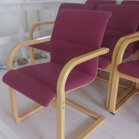 Besøksstol / konferansestol i tre og understell i krom med grønt stoff