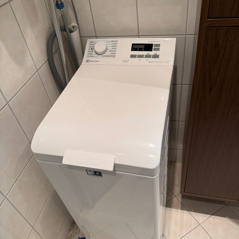 Kjøpt ny i 2019, og vært i vanlig bruk siden. Aldri hatt problemer med den. Jeg selger den fordi jeg har flyttet til en leilighet uten opplegg for vaskemaskin.