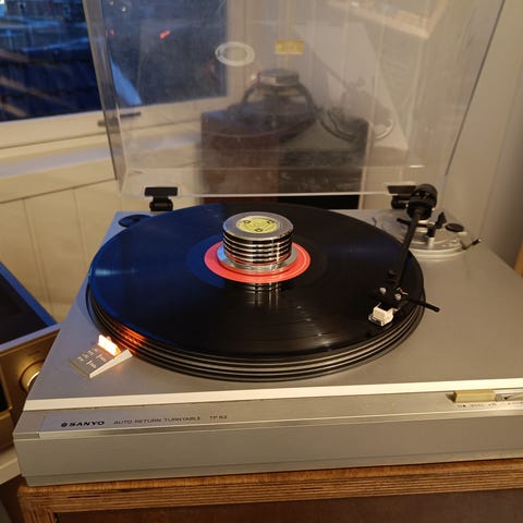 PYE 5013 platespiller med innebygd radio. Enheten har flere kontroll knapper for ulike funksjoner, og en sort finish med metalliske detaljer. Designet med ben og et gjennomsiktig lokk over platespilleren. Den har stått på hytta i mange år og min mor ville ha den hjem men dessverre brakk bryteren til start stopp knappen se nederste bilde så måtte kjøpe en annen til hun. Er en spiller fra 70 tallet og kan bli verd mye hvis noen klarer å fikse den for disse finnes det ikke mangen av.