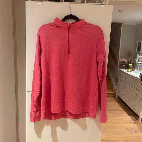 Nydelig oransje t-skjorte med ribbet mønster og fin detalj med glidelås i halsen