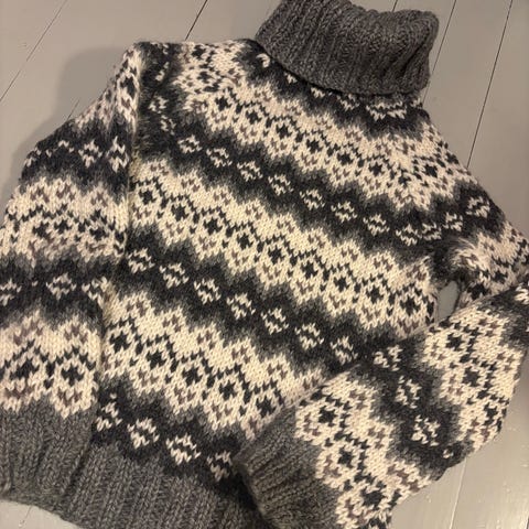 Drifa genser strikket i Gjestal Soft Cortina. Tykk god genser i friske farger. Den er ikke brukt, kun prøvet på. Første bilde er kun illustrasjon. De andre er slik genseren ser ut.