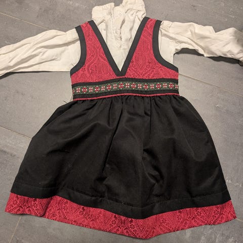 Helt ny! Nydelig festdrakt til jente fra Reflex i størrelse 86. Med hvit skjortebody som også er i størrelse 86. Kjøpt ny på Barnas Hus. Følger med ekstra knapp til bodyen. Spør om du lurer på noe eller ønsker flere bilder.
