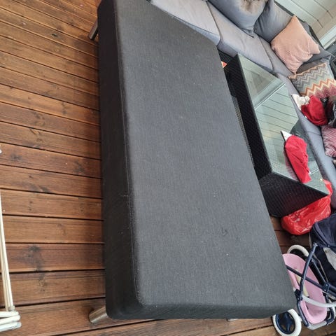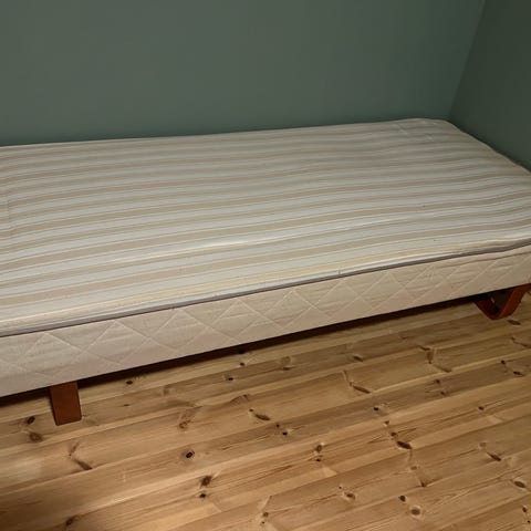 Gammel Jensen seng med en størrelse på 180x200. Mangler ben. Noen synlige flekker. Ellers meget god og myk seng som er brukt som gjesteseng. Gis bort mot henting.