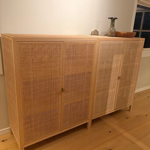 Pent brukt plassbesparende skap i eikefiner med skyvedører. Tonstad - IKEA