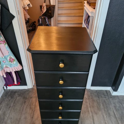 Meget velholdt,solid og fin gammel kommode med gullhåndtak. Nymalt i en nydelig gråfarge. Helt uten bruksmerker/ slitasje. Pris kan diskuteres ved rask avgjørelse! Må hentes raskt grunnet plassmangel!
