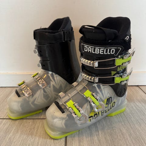Flotte alpinstøvler fra Dalbello med 4 spenner. Lite brukt. Str. mondo 25-25,5, ca skostørrelse 39. Hentes i Asker, evt på Beitostølen.
