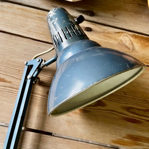 Klassisk og solid Luxo L-2 arbeidslampe selges. Gir svært godt arbeidslys og er enkel å justere med fleksibel fjærarm. Perfekt til skrivebord, hobbyarbeid, verksted eller som leselampe.