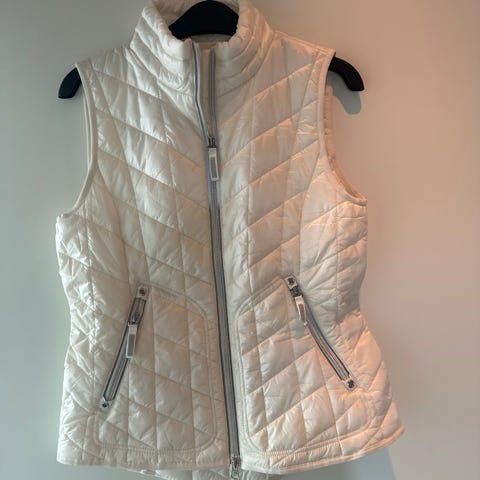 Meget pen Boblevest i hvit/offwhite str 42. Vesten kan brukes alene eller under jakken. Mange detaljer og lommer.