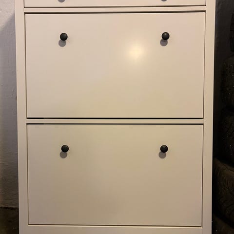Skoskap Hemnes med egne håndtak i skinn. Må hentes i 3etg uten heis