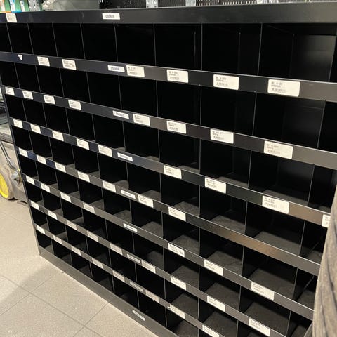 Alle hyller, skuffer er i orden.