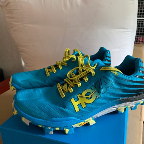 Hoka Mach X 2 i størrelse 41 1/3. Skoene er kun brukt inne på mølle. Har løpt cirka 50km i skoene. Selges fordi de ikke passet foten min helt.