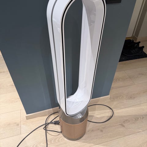Meget pent brukt luftrenser/vifte selges. Produktet kombinerer luftrensing og viftefunksjon for å forbedre innendørs luftkvalitet. Designet med en høy, slank form og innebygd teknologi for å fange opp og fjerne luftbårne partikler.