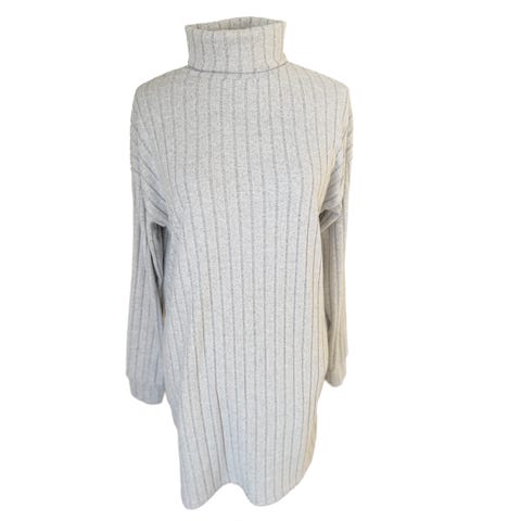 Behagelig hverdagskjole med lange ermer og høy hals. Myk og behagelig. Lys beige. Leveres skånsomt vasket og klar til bruk.