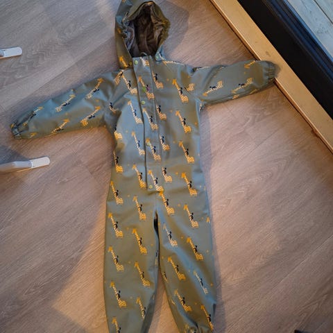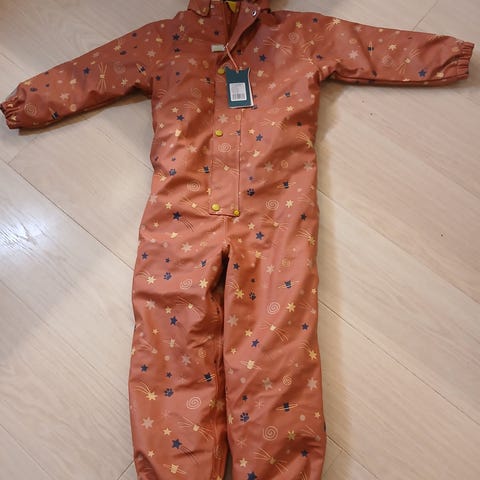 Kattnakken vinterregndress 116 selges. Godt brukt, men fortsatt mye bruk igjen! 30 000 i vannsøyle. Har fått et lite merke på seg som jeg ikke vet hvor kommer fra, men det har ingenting å si for vannsøylen, den er fortsatt tett. Strikkene nederst på beinet har dessverre røket. Kjøpt ny av oss.