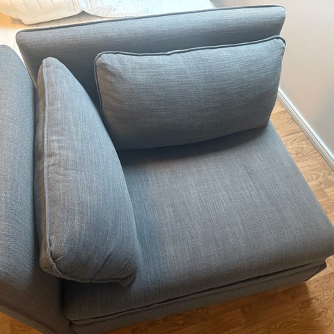 Selger 2-seters modul sovesofa. Kjøpt juni 2021. God å sitte i med dype seter. Enkel å slå ut til sovesofa og velig behagelig å sove i.