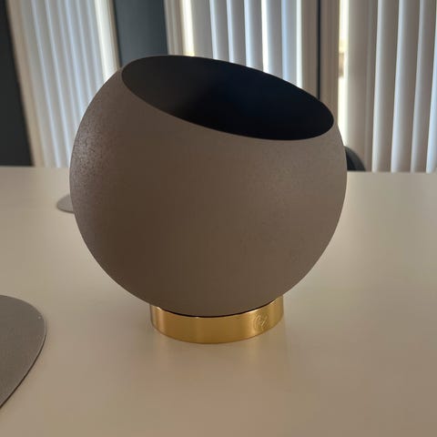 Globe vase medium fra AYTM er en rund glassvase med en tydelig følelse for form og balanse. Den håndlagde designen gir hvert eksemplar en unik karakter, og den smarte messingbunnen holder vasen stødig i den retningen du ønsker. Globe vase medium passer like godt med enkeltstående kvister som med buketter og blir et elegant blikkfang på sofabordet, vinduskarmen eller spisebordet. En tidløs detalj som løfter planter og rom på en enkel og dekorativ måte.
