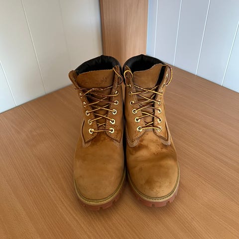 Svært lite brukt Timberlands selges. Brukt ca 2 uker. Kun brukt på korte distanser. Impregnert og vedlikeholdt. Selges da de er litt for store for meg.