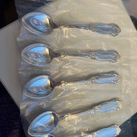 Selger et sett med 12 flotte Edel sølv-skeer i 830S (10,8cm), hvor 10 av disse er stemplet med Gunnar Aase (et velkjent norsk sølvsmed-navn). Dette er klassisk norsk design og kvalitet – perfekt for samlere, som gave eller til bruk ved spesielle anledninger. Selges samlet