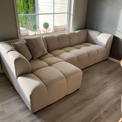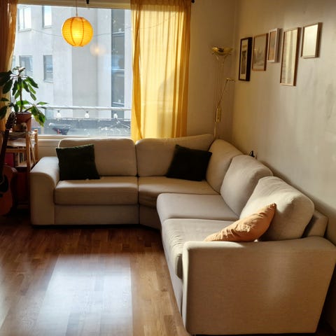 Vaxholm IKEA sjeselong modul sofa. Som kan remodeleres. Armlenet kan plasseres overalt på de festene. Har blitt brukt i noen år også blitt lagret vekk. Trekket er av ull og kan vaskes. Praktisk.