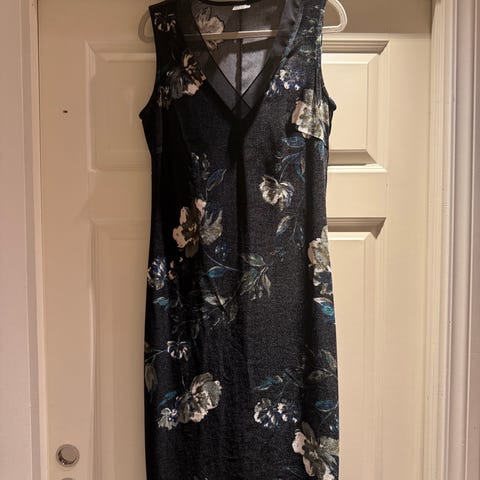 Fin kjole fra Saint Tropez i str. M. Kjolen har 3/4 ermer og lommer i sidene. Blå farge. Den er formsydd og sitter veldig pent på. Passer til både hverdags og pent. Kjolen har ligget lagret en stund så kan med fordel vaskes før bruk.