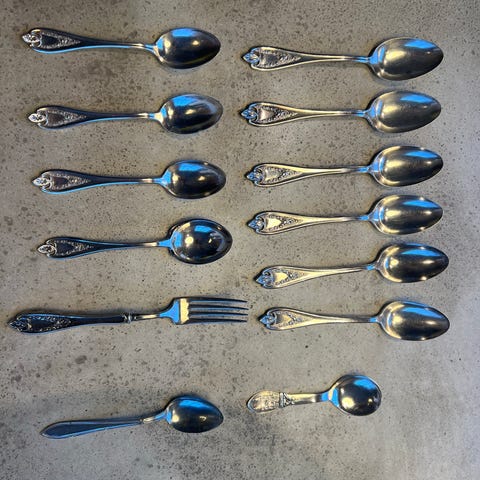 4 spiseskjeer sølvplett 60 g, trenger en god hånd sølvpuss 15 cm