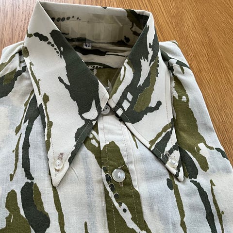 Skjorten er ny men lappen er tatt av.