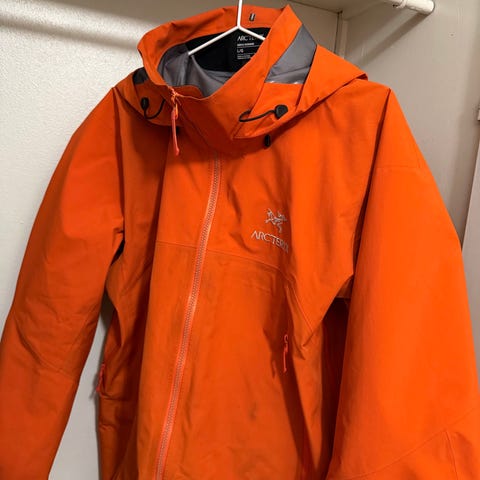 Helt ny skalljakke fått fra Arc’teryx etter reklamasjon. Jakka har jeg brukt 1 gang på kort lufterunde med hund - ingen nedbør. Lapper er ytt av. Kan vise til mail med Arc’teryx.
