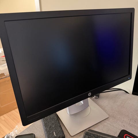 Selger en solid og pen HP EliteDisplay E242 PC-skjerm. Dette er en kvalitets skjerm som passer godt til hjemmekontor, studiebruk eller vanlig PC-bruk.